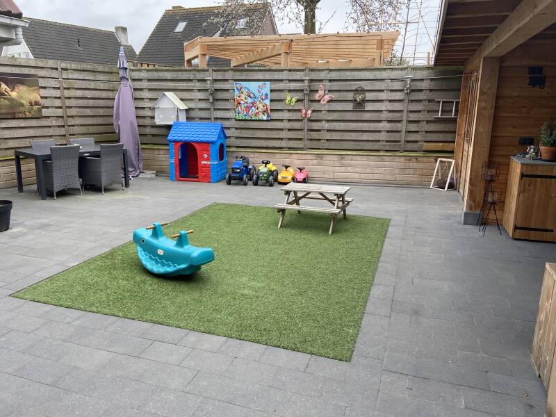 Als het weer het toe laat gaan we naar buiten voor een wandeling, een boodschap of gewoon lekker spelen in de tuin. In de tuin is genoeg buitenspeelgoed aanwezig voor iedereen, waaronder loopauto's en diverse klein speelgoed.